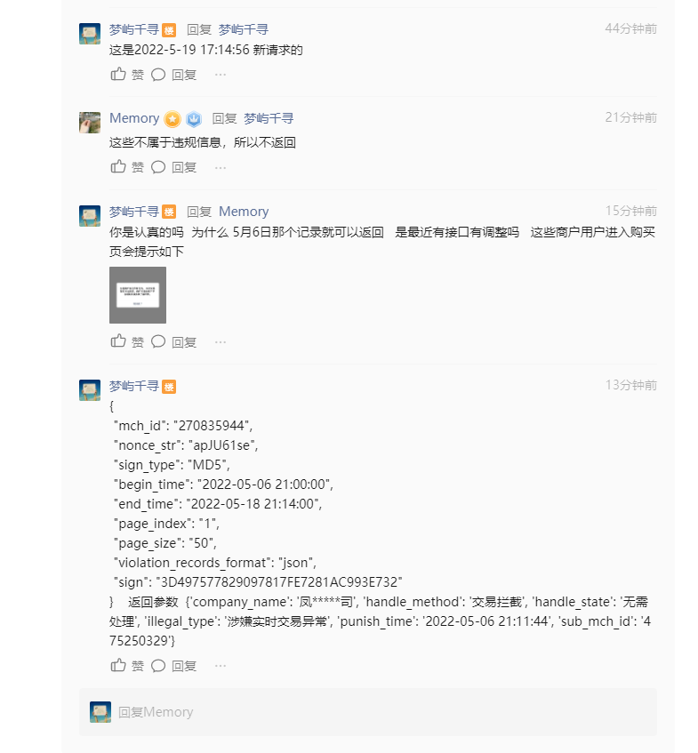 自2022年5月6日后 接口无法返回商户违规信息