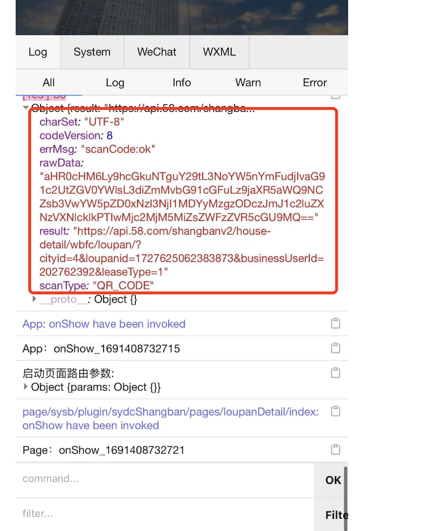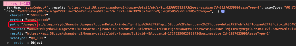 同样的代码,扫描同样的二维码,在开发者工具中的返回值中有path字段,但是到了手机上就没有了,下面是在开发者工具中: