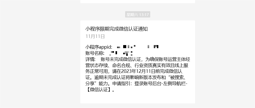 我们公司小程序今天也收到通知了,小程序是去年创建的,复用的公众号微信认证进行的认证,并且在上个月进行了续费认证,但是今天收到了该小程序认证到期的通知。