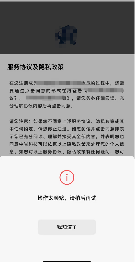 (4)多次操作后,显示操作太频繁: