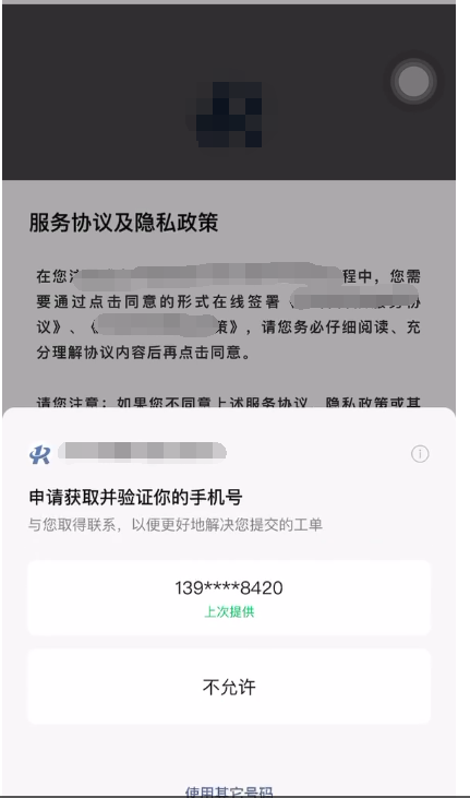 (1)弹出获取手机号授权页面: