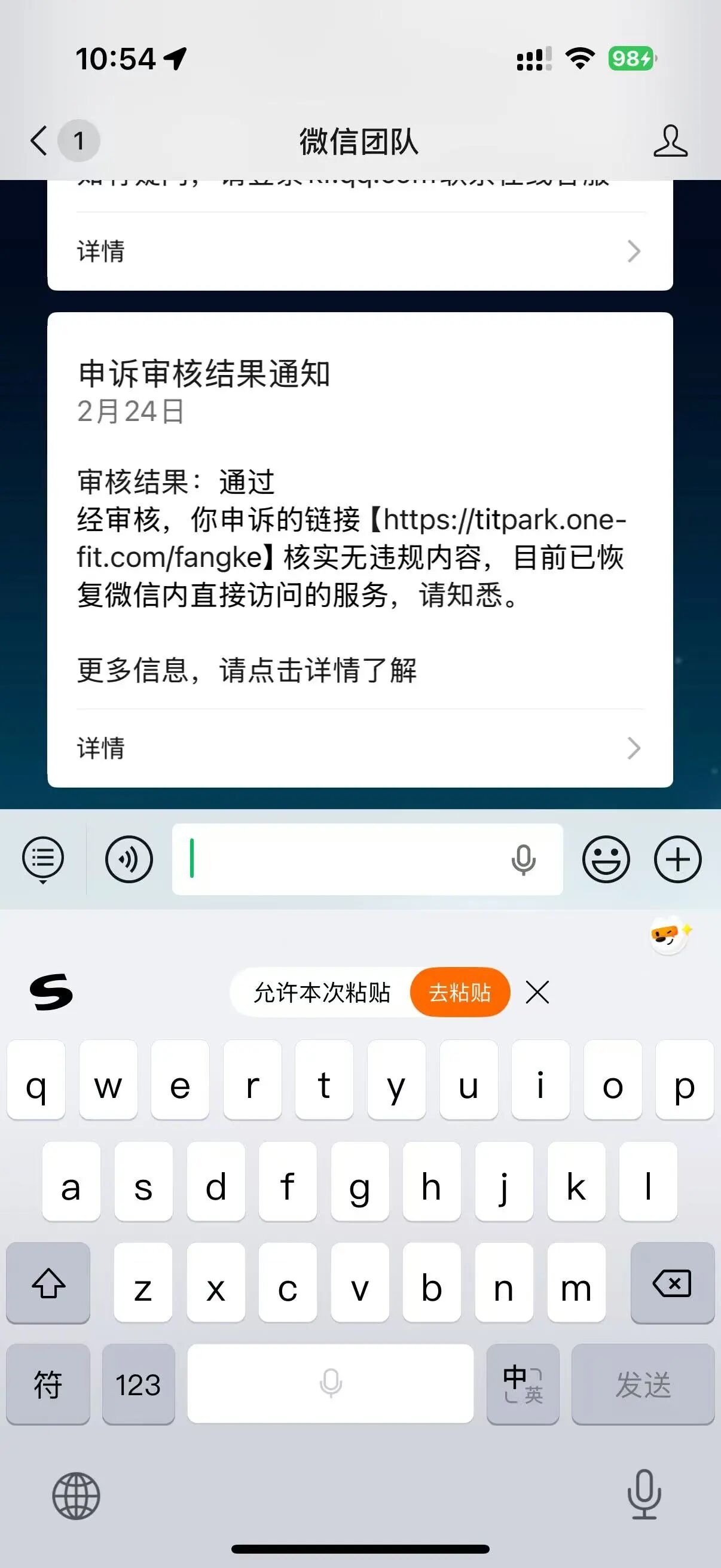 现在已经申请了一次,今天又提示不能浏览了,导致客户无法进入园区,【【利益严重受损】】!请麻烦微信给我们一个说法,因为什么原因限制了链接访问,又是什么原因导致了已经申请过一次,又要重新申请!