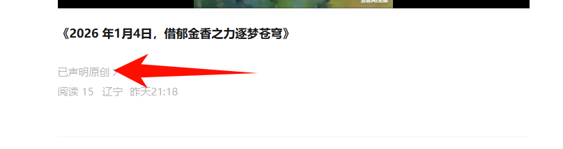 你好,查看2026年1月4日20点发布的内容为“图文”,“图文”无原创功能,若想声明文字原创,请通过“文章”进入编辑页面并开启声明原创按钮。