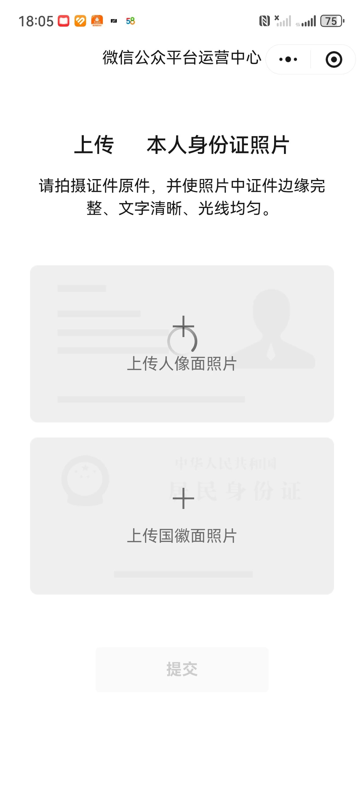 扫码后,上传身份证,传上去后一直转圈圈,怀疑微信版本没更新维问题,但是平台为什么不提示,