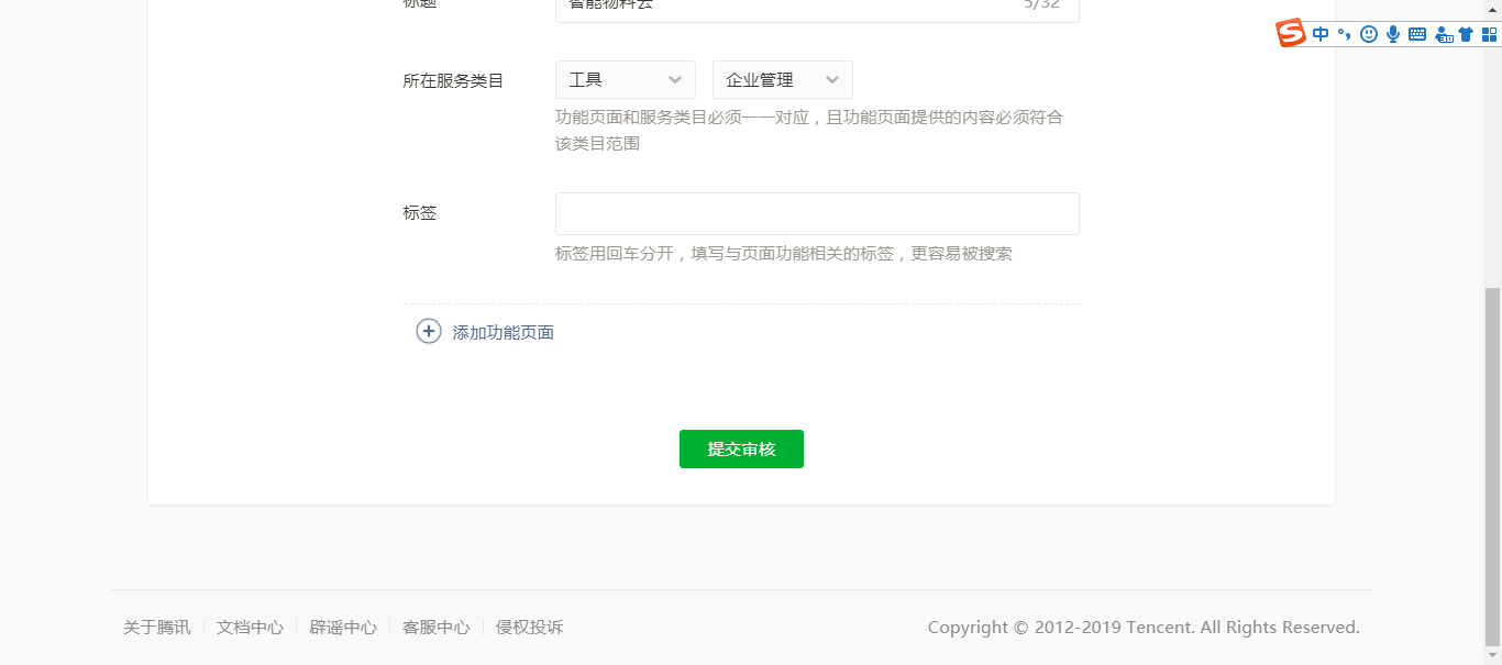 这个小程序是第一次提交审核版本,可以提供测试账号的,但是在提交审核版本的时候没有可输入的地方,一起运营的另外一个小程序在审核提交的时候可以输入测试账号信息,不能输入测试账号信息的小程序审核提交页面截图如下: