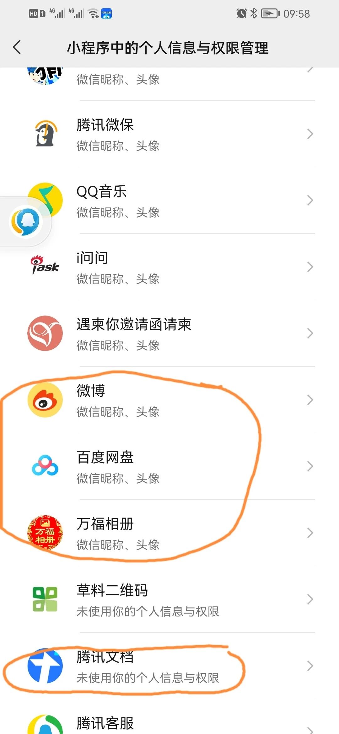 微信小程序腾讯文档获取了我的微信昵称和头像,为什么我在小程序个人信息与权限里看不到相关授权??别的微信小程序都可以看到关于微信昵称和头像的授权!!