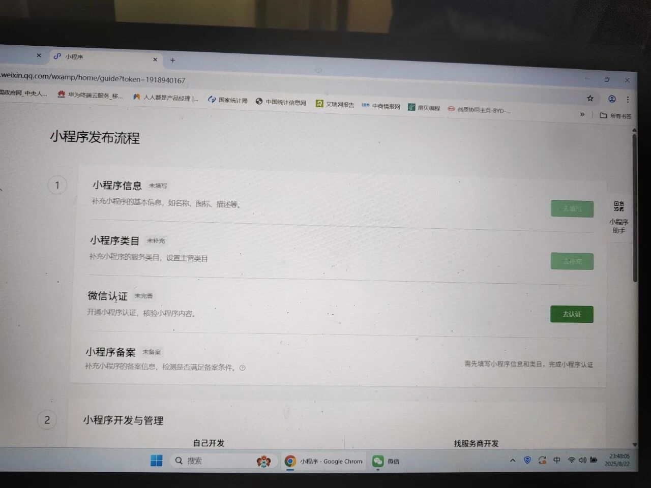 为什么我申请的小程序补充不了小程序信息和小程序类目?