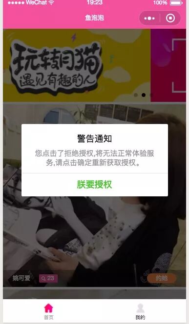 当用户点击拒绝后 我会弹出如图所示的模态框,(wx.showModal),但是有个问题 用户此时不进行授权 而是点击了底部tab 那么这个弹窗就消失了 这样我就无法获取到用户信息 业务流程无法进行