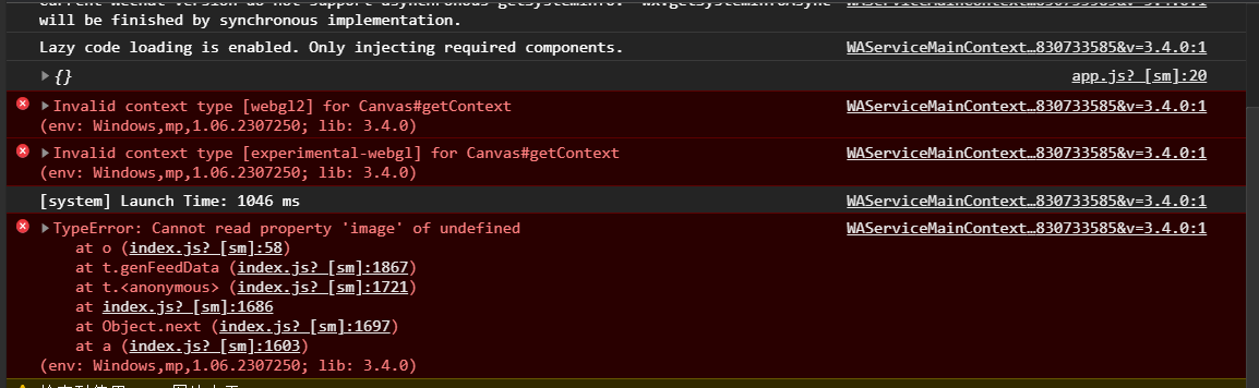 顺着异常信息,index.js 58行,xx.image,这个xx是空的。自己排查下