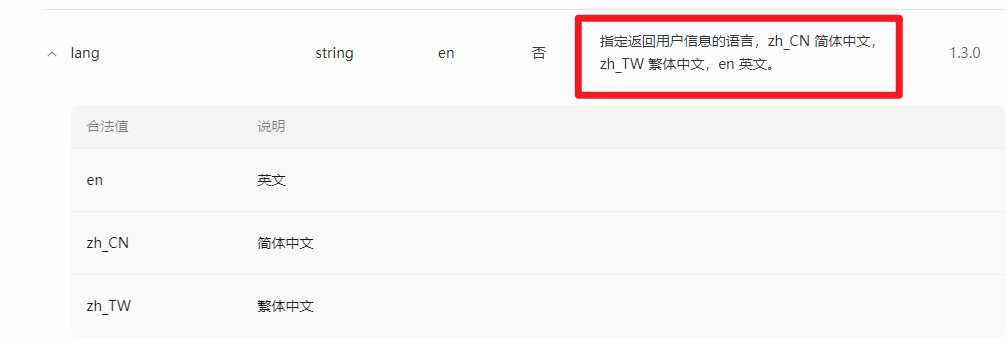 你看一下文档,说的是指定返回用户信息的语言,zh_CN 简体中文,zh_TW 繁体中文,en 英文。不是弹窗展示的文字语言