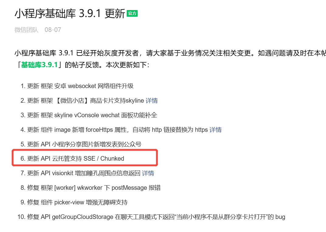 小程序基础库 3.9.1 已经开始灰度开发者,请大家基于业务情况关注相关变更。如遇问题请及时在本帖下方留言或在 小程序交流专区 发表标题包含「基础库3.9.1」的帖子反馈。本次更新如下: