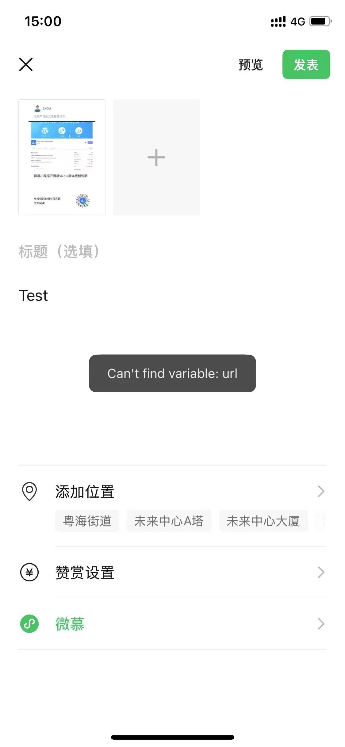 使用wx.showShareImageMenu发表到公众号,点“发表”按钮会报个错,不过发表成功了,看公众号文章列表才发现 。