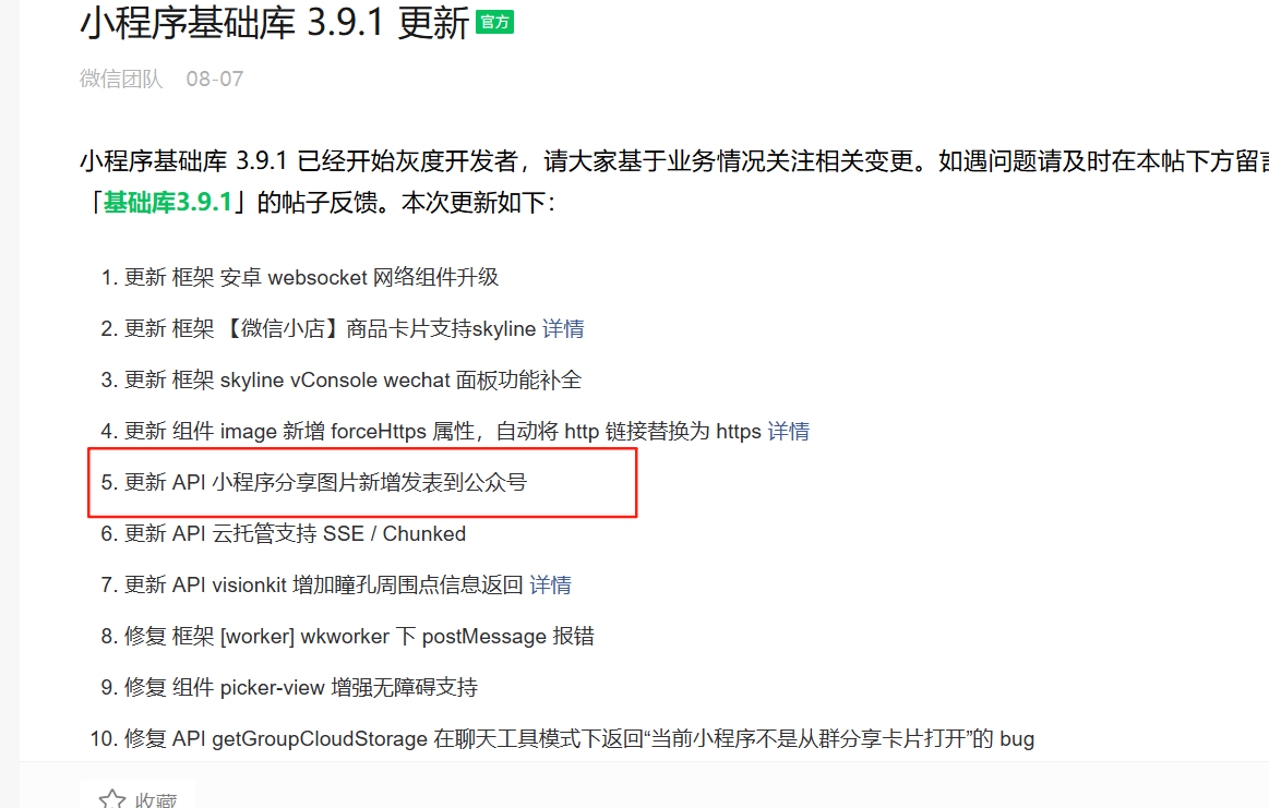 小程序基础库 3.9.1 已经开始灰度开发者,请大家基于业务情况关注相关变更。如遇问题请及时在本帖下方留言或在 小程序交流专区 发表标题包含「基础库3.9.1」的帖子反馈。本次更新如下: