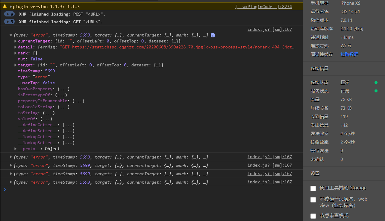 用开发工具的 真机调试,安卓一切正常,iOS 这边,加载时会直接触发 binderror,居然报404,错误内容如下:
