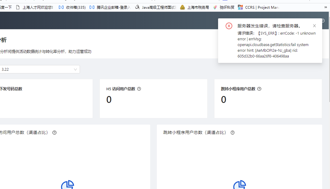 请求错误:【SYS_ERR】: errCode: -1 unknown error | errMsg: openapi.cloudbase.getStatistics:fail system error hint: [6DMbKowFE-P3wYsa] rid: 605d3204-1bb5c8c8-24c99768
