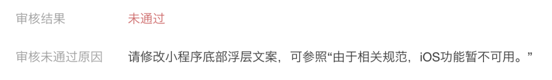 此小程序因iOS上涉及虚拟支付被封,目前修改处理后已上线,线上版本已去除iOS支付按钮和引导等字样。 但是现在申诉别驳回,下面是驳回详情👇
