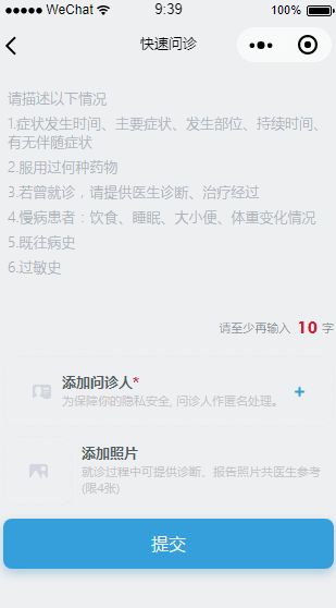 你截图的是线上版本吧?我们提审的新版本已经没有问诊了。