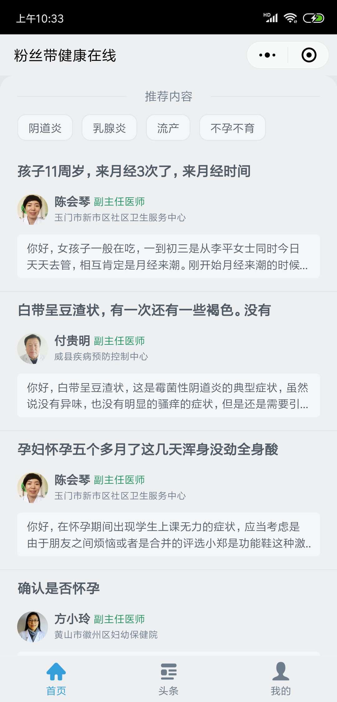 下图为提测版本首页截图(截图二中问题和医生回复仅为内容展示,不属于在线问诊服务)和资讯页截图