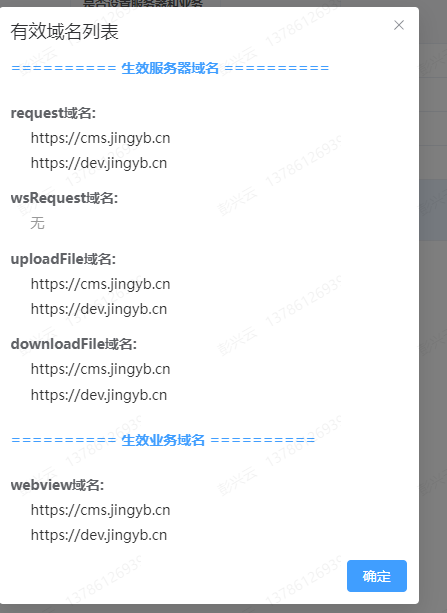 这个是通过接口https://developers.weixin.qq.com/doc/oplatform/openApi/miniprogram-management/domain-management/api_geteffectiveserverdomain.html和https://developers.weixin.qq.com/doc/oplatform/openApi/miniprogram-management/domain-management/api_geteffectivejumpdomain.html查询的接口