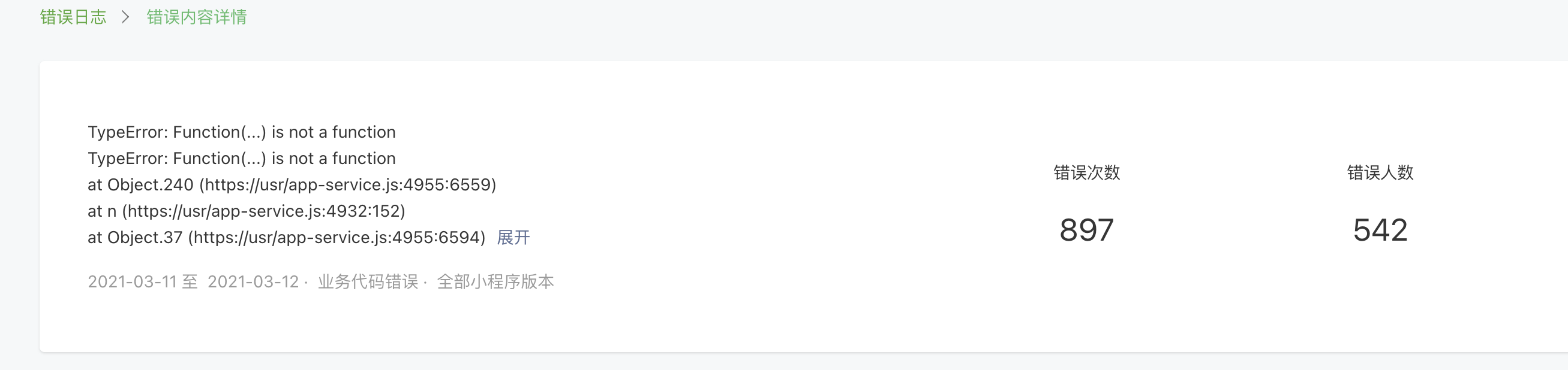 今天后台报了大量 TypeError: Function(...) is not a function 的错误,全部都是 安卓 平台,基础库 2.10.4