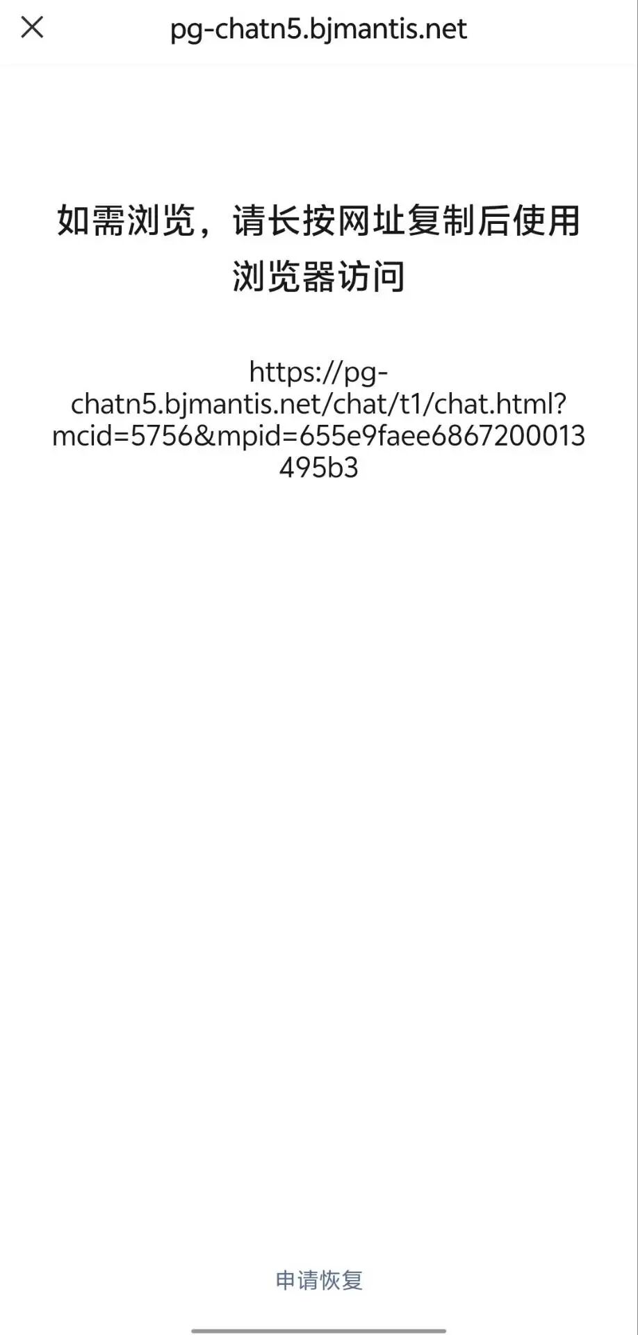 微信公众号菜单发送链接不能自动跳转, 页面符合《微信外部链接内容管理规范》,申请恢复后,只有申请人的立马就可以自动跳转了,其他人依旧需要复制链接后到浏览器打开