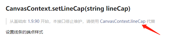CanvasContext.setLineCap()从基础库 1.9.90 开始停止维护,请使用 CanvasContext.lineCap 代替