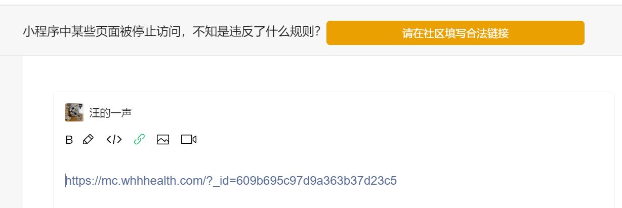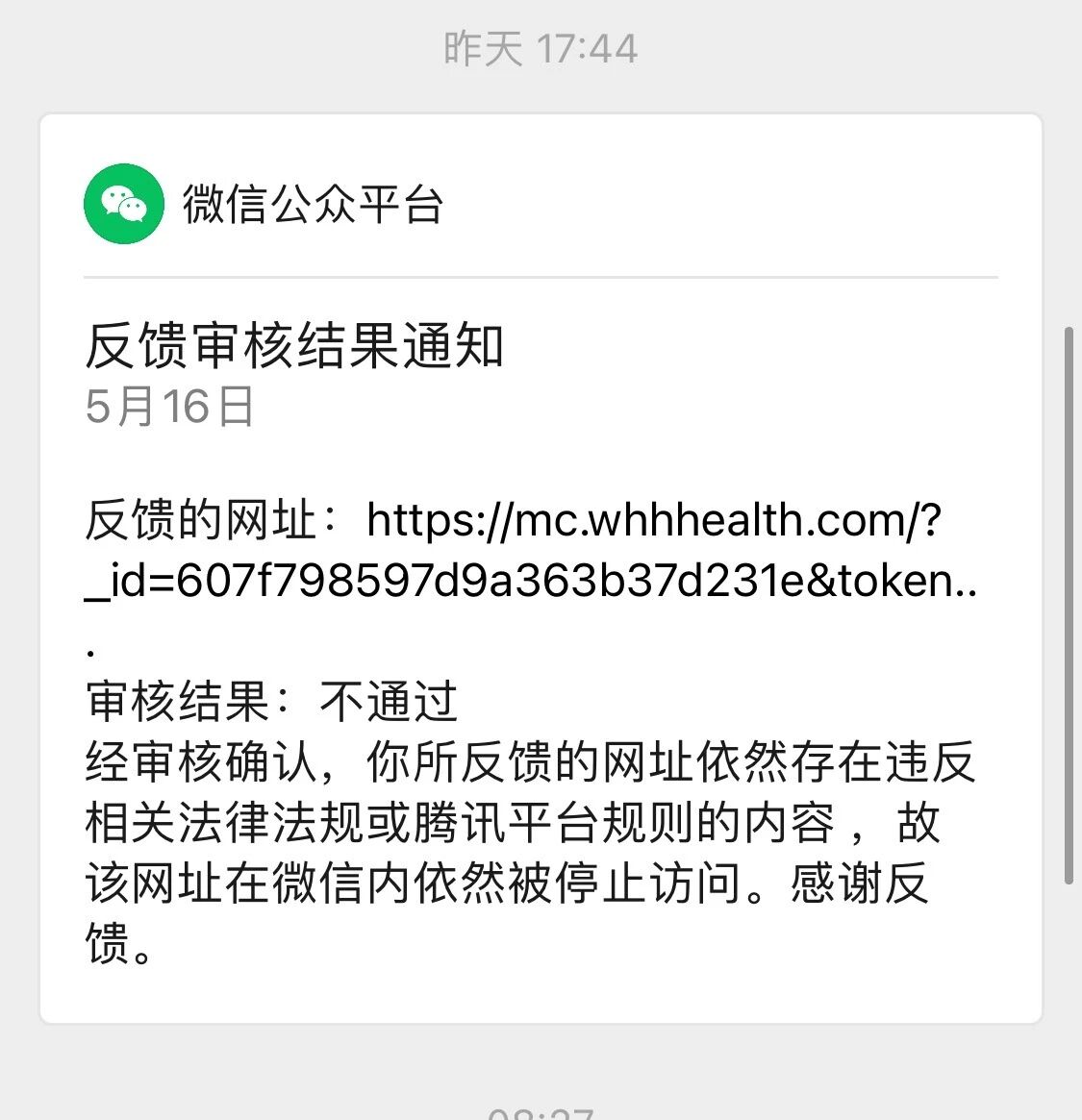 具体违规情节:违反了《微信外部链接内容管理规范》第19条,详细规则请参考《微信外部链接内容管理规范》http://weixin.qq.com/cgi-bin/readtemplate?t=weixin_external_links_content_management_specification