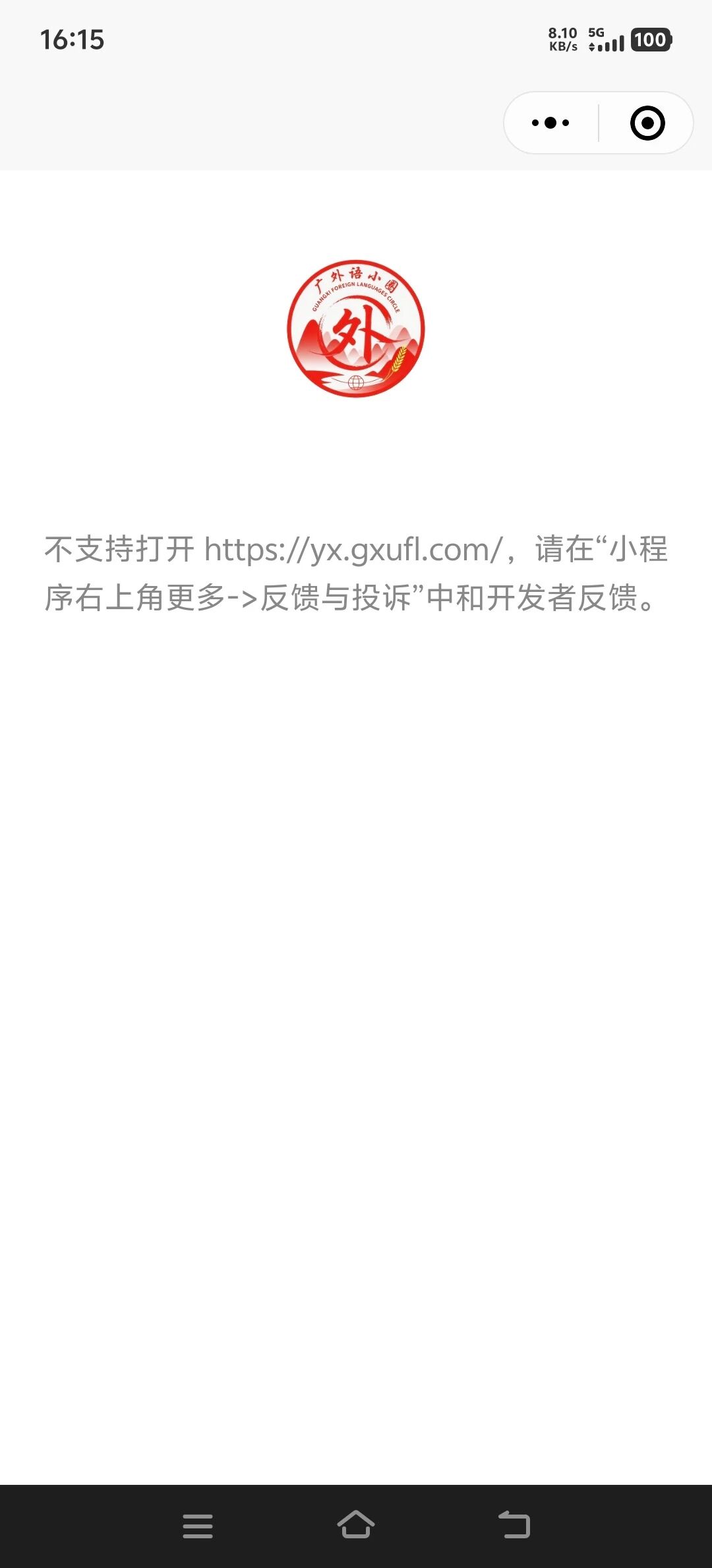 无法打开该页面 不支持打开 https://yx.gxufl.com/,请在“小程序右上角更多->反馈与投诉”中和开发者反馈。一直被拦截,但是这个域名不是我的我配置不了业务域名啊,我怎么办啊,这个是我小程序里面需要跳转的域名