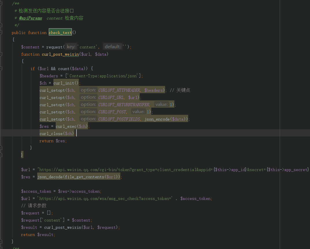 1、接入内容安全检测接口:< a href="https://mp.weixin.qq.com/cgi-bin/announce?action=getannouncement&key=11522142966rk3L2&version=1&lang=zh_CN&platform=2">查看详情</ a>