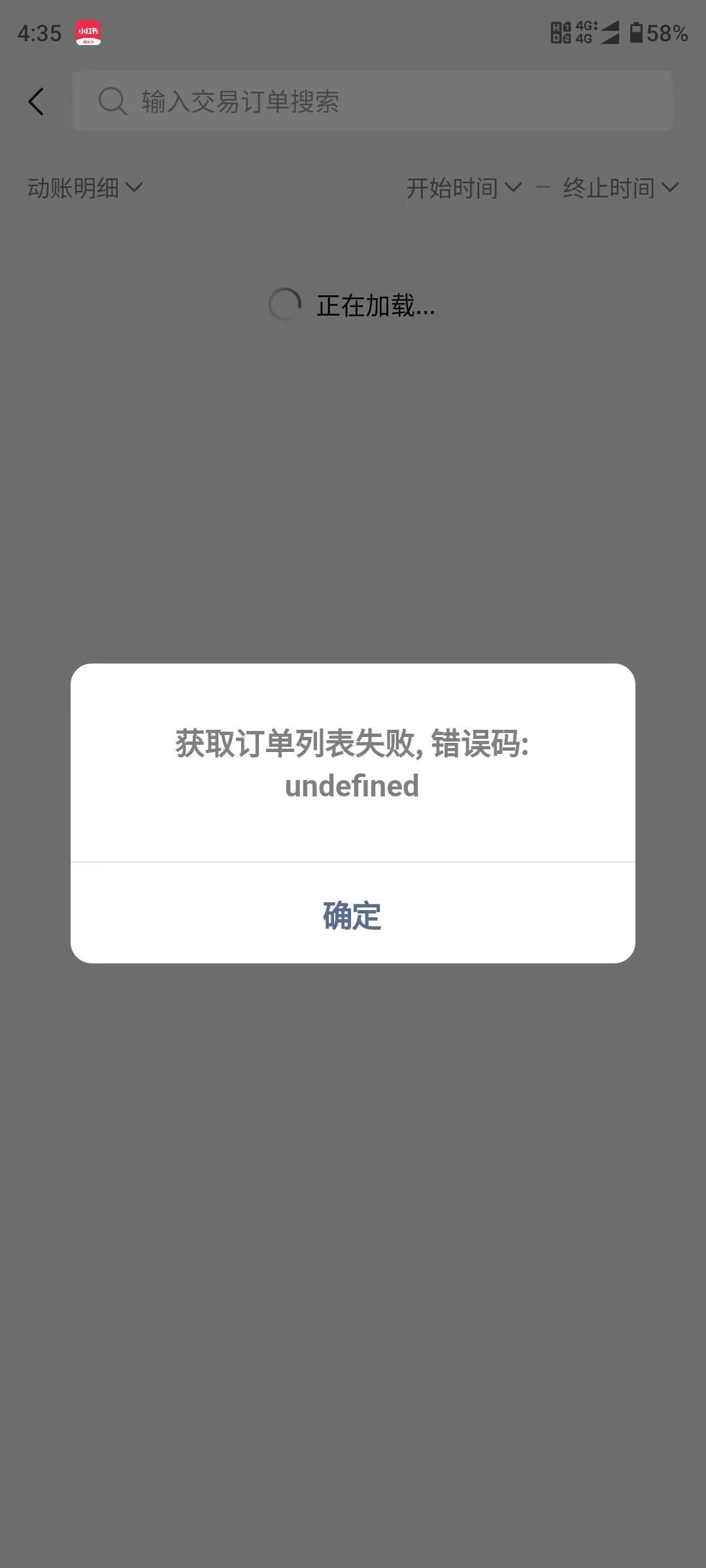 提现没到账,想查看动账明细显示:获取订单列表失败,错误码:endefined
