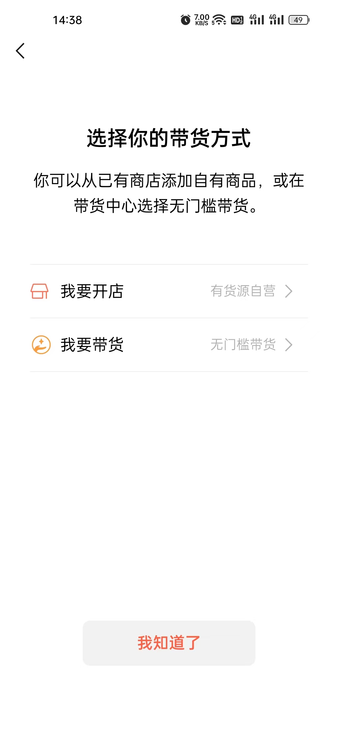 点橱窗管理-选品中心点右上角-出现选择你的带货方式,5月26日之前,是出来添加商品的页面,现在不行了