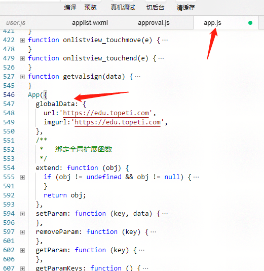 我的修改方式是getApp().globaData.imgurl="https://ischool.topeti.com"