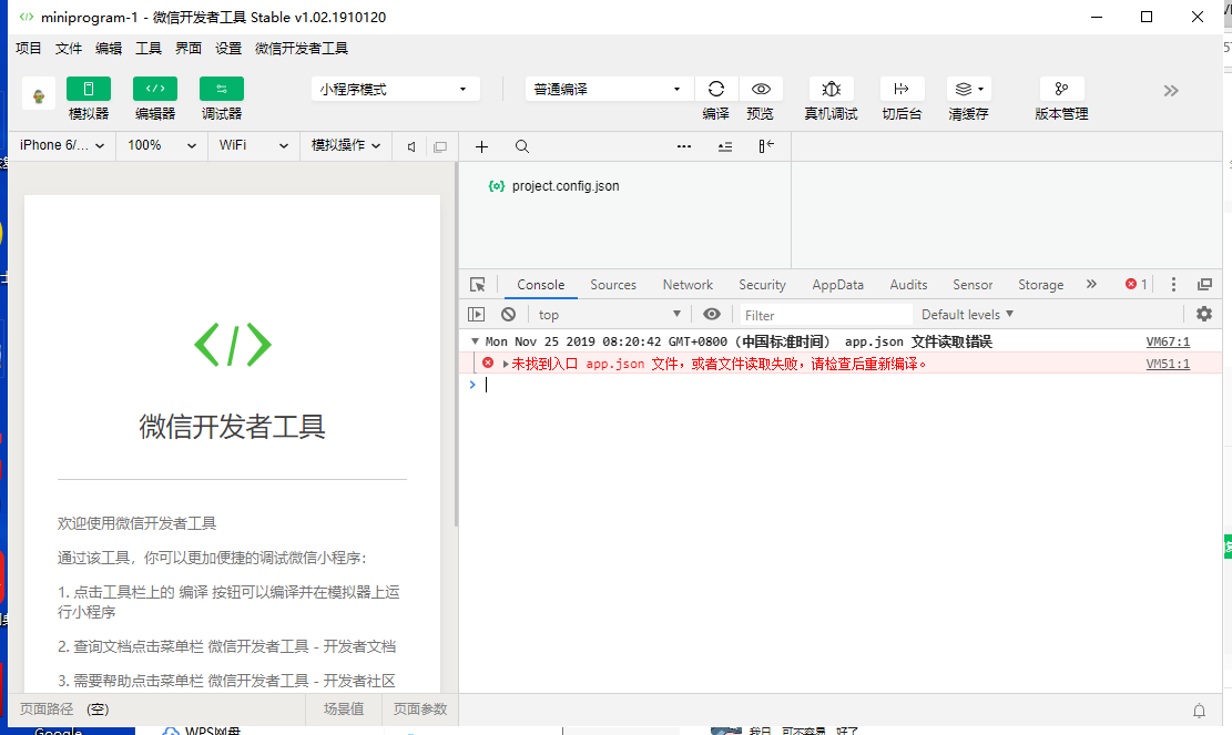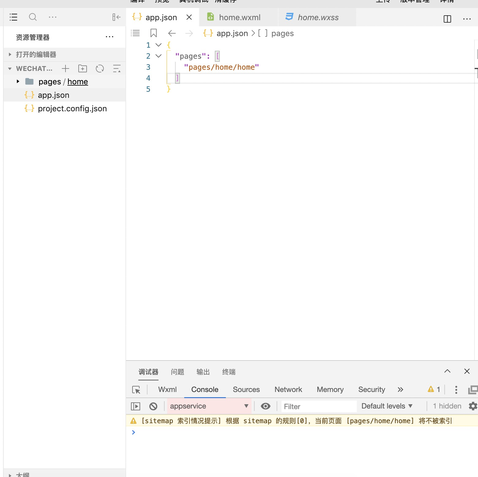 重新创建项目生成一个 project.config.json,这个文件不要删除,再创建app.json,写页面下的文件自动生成,不报错的。