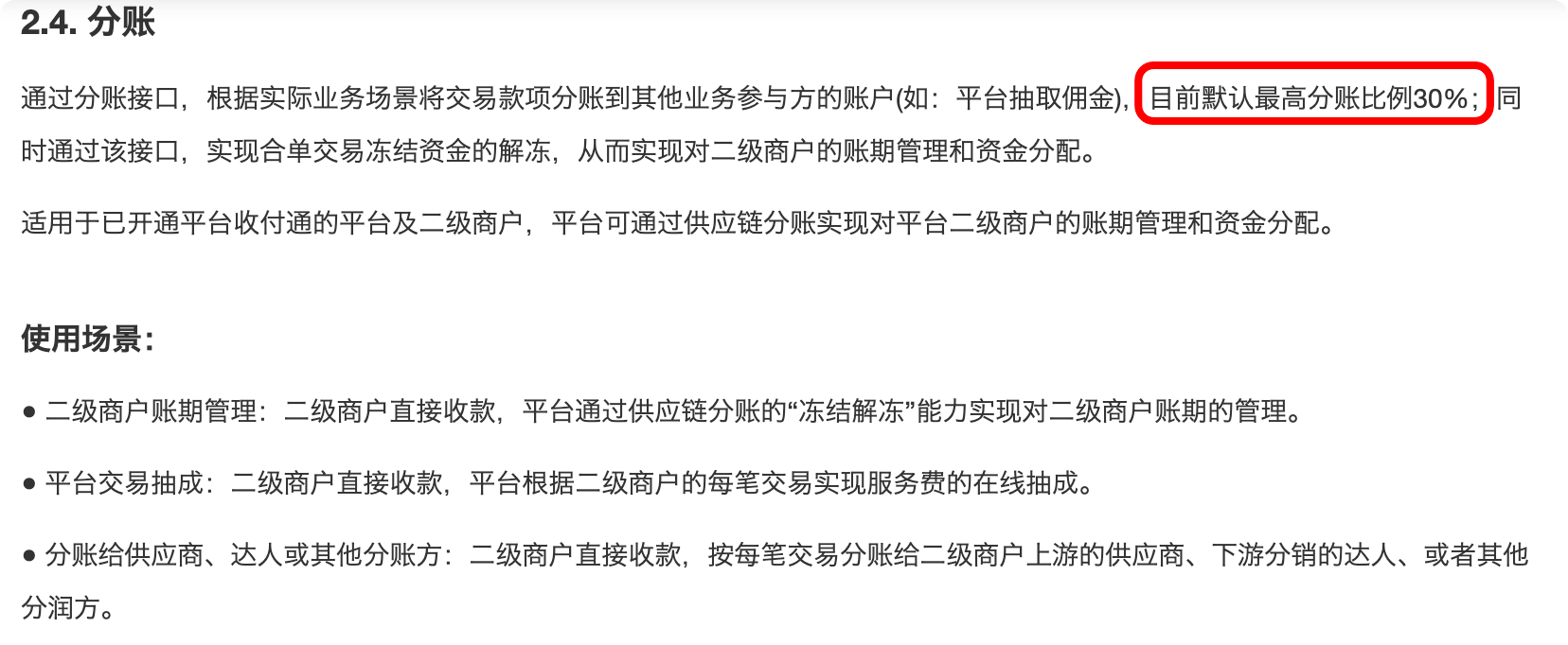 文档中提到的“最高分账比例30%”怎么理解?