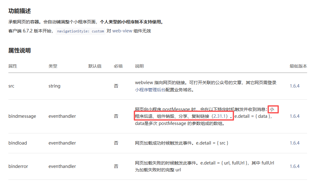 本来url传参好好的,突然来个这个postMesssage方法,我还说官方文档上没有这小程序向h5页面发消息的,这倒好,一搜都说可以!我百口莫辩的,人家文章都甩过来了。文章说就是这么写的。这试了大半天的,别人已经把h5页面都改了。这谁传的谣言啊!官方客服呢?能不能把这个谣言实现了!