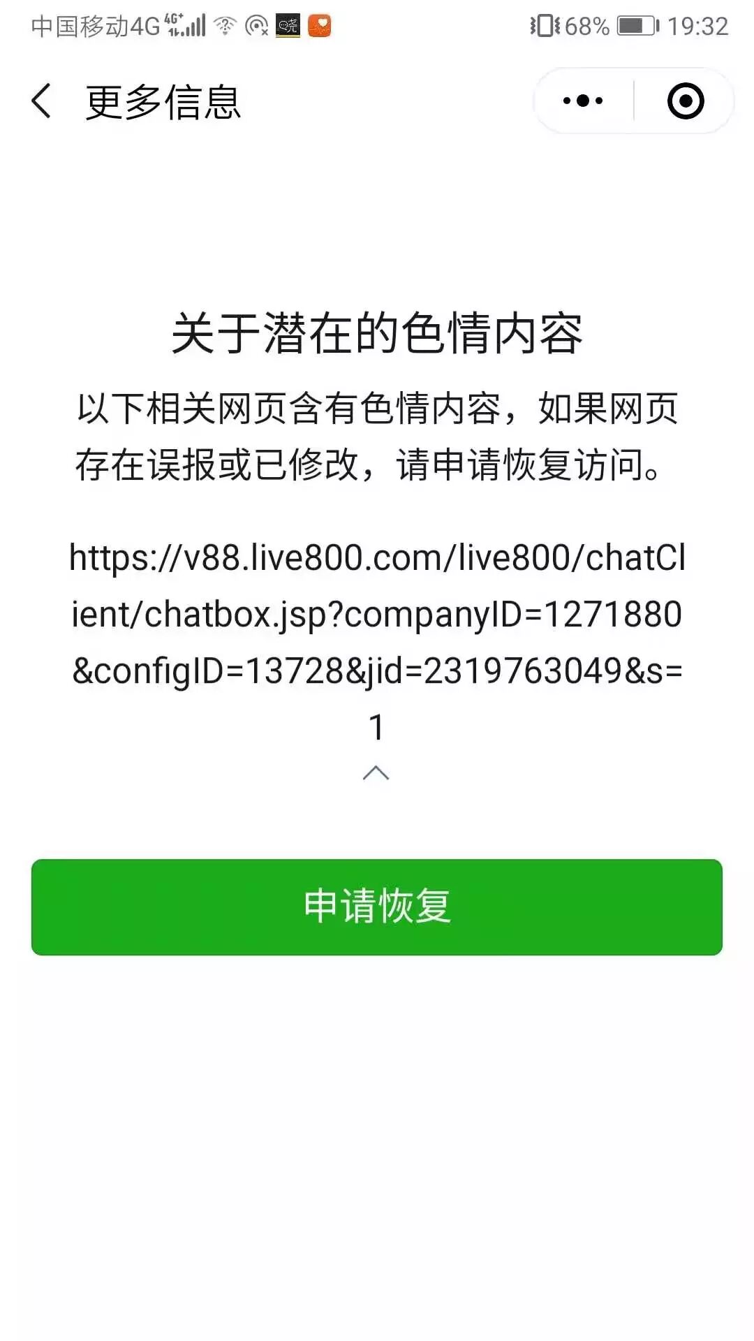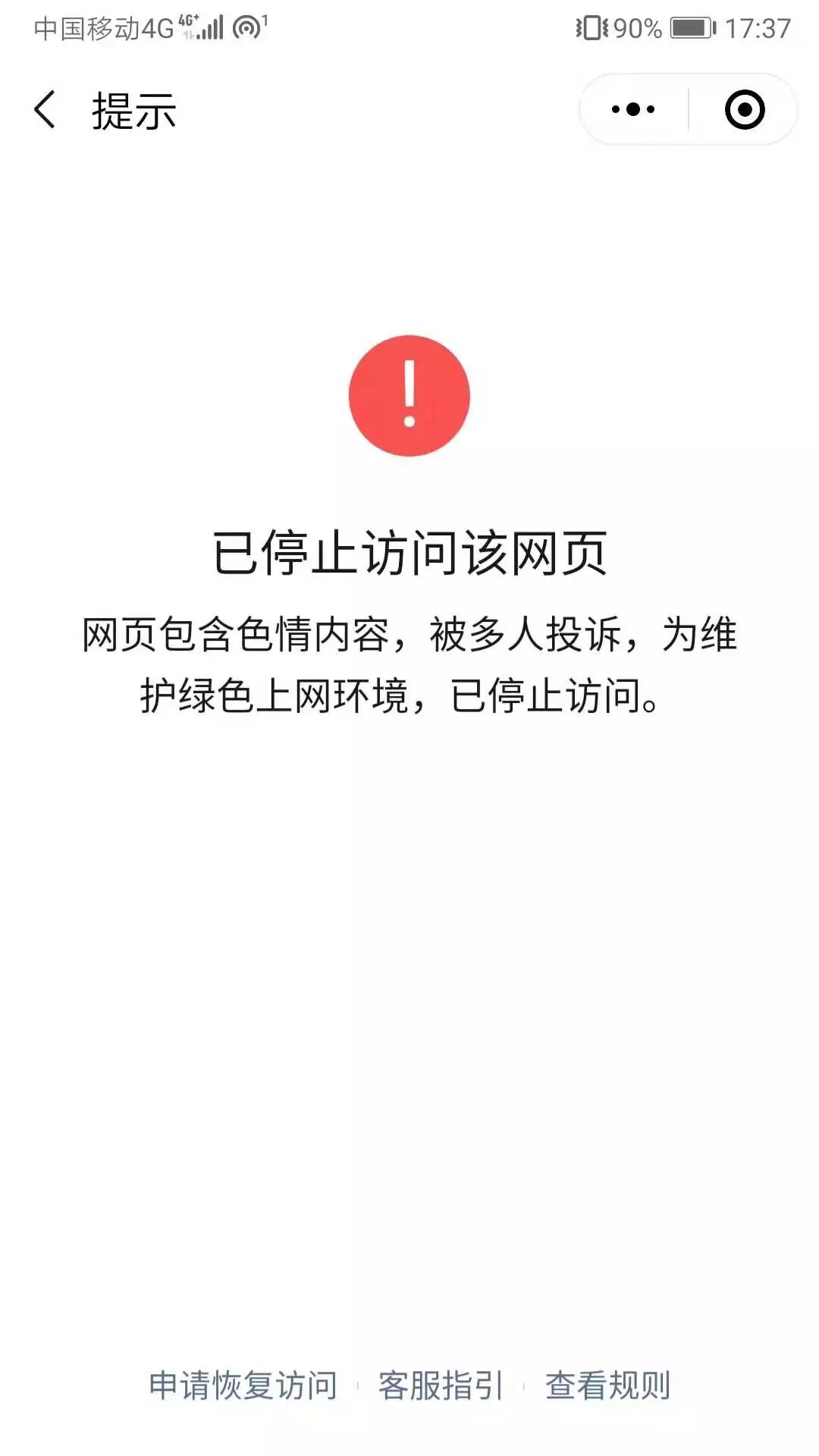 小程序已经审核通过,即将于2020/1/3上线,于2019/12/23提前发布了小程序,但外链的品牌官网被恶意举报为网页包含色情内容,实则是正规的官方网站和正常的产品页面展示,且后续替换了临时空白链接仍然显示禁止访问,报错见下图,请帮忙恢复访问,十分感谢!