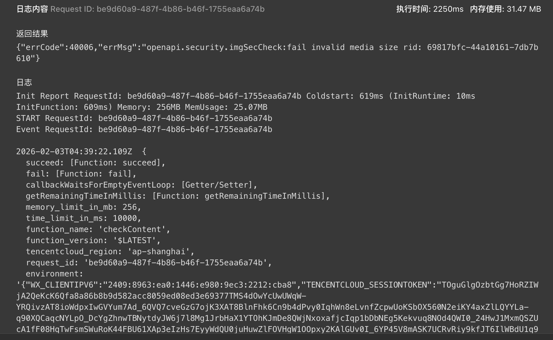 {"errCode":40006,"errMsg":"openapi.security.imgSecCheck:fail invalid media size rid: 69817bfc-44a10161-7db7b610"}