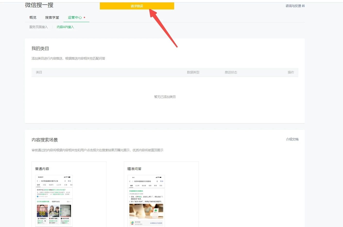做小程序的内容接入,第一步卡住了,没有按钮可以添加类目,请好心人解释一下