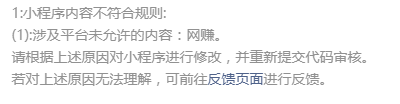 官方人员你们好,重新查看了自身的小程序,自审认为小程序未涉及网赚相关内容