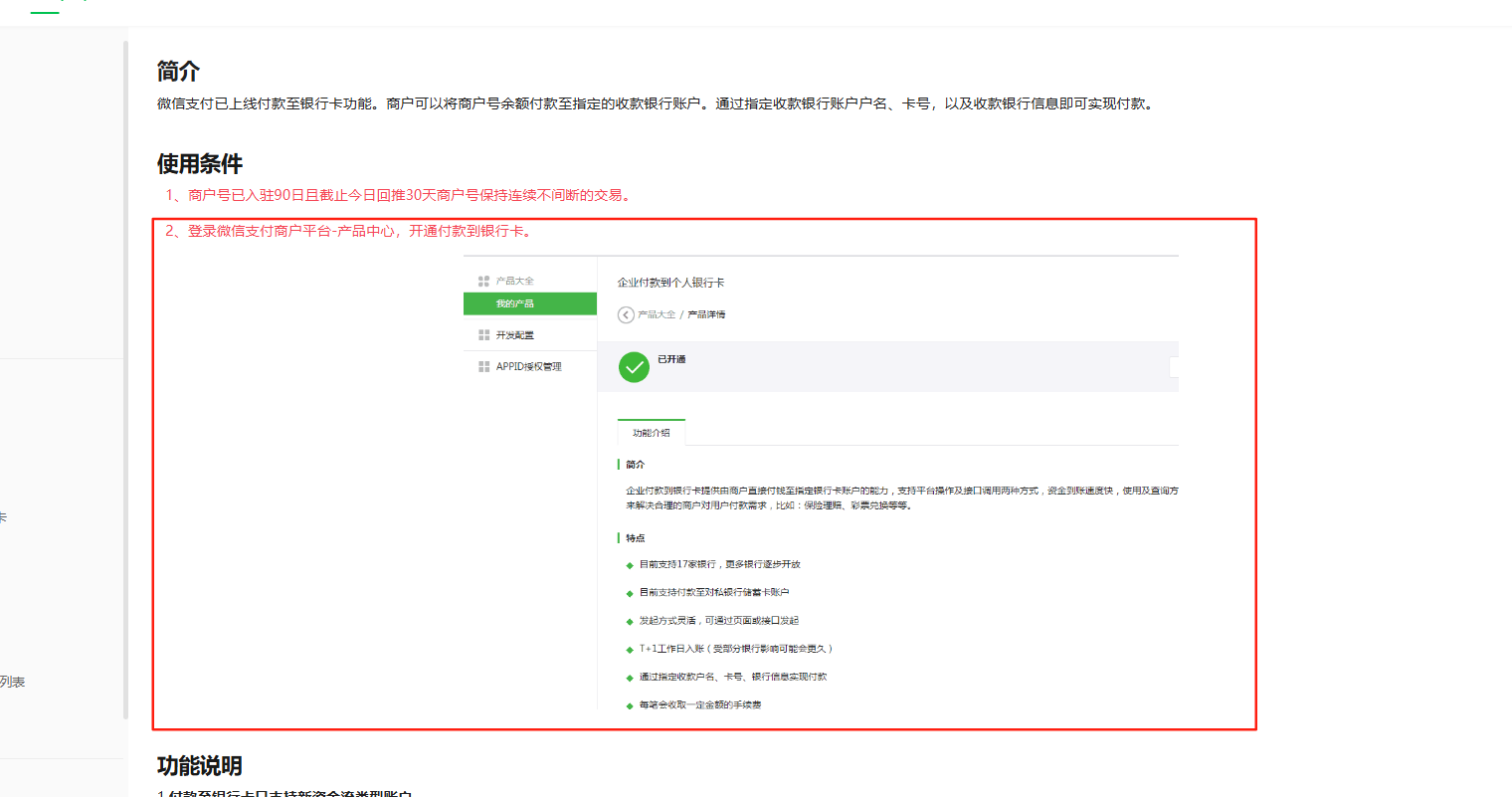 微信商户平台,转账到银行卡这个功能在产品大全里为什么看不到?