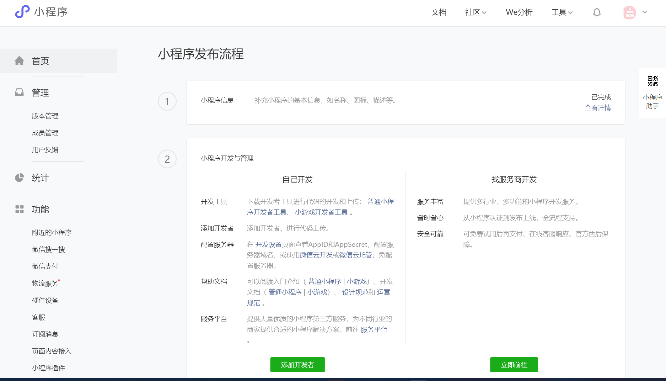这里文档都是错误,需要在 这个网址https://mp.weixin.qq.com/wxamp/wakf?token=1998407086&lang=zh_CN使用邮箱进行登录