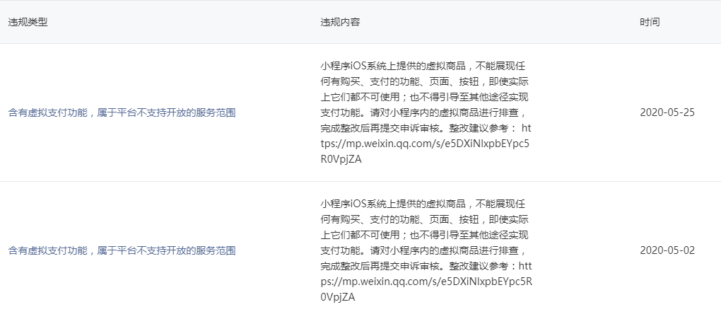 尊敬的小程序审核人员:您辛苦了! 今天点击进入违规记录才看到的IOS虚拟支付的违规记录,为什么之前一直没有收到站内信通知呢(微信也没收到),现在已经再整改了,还需要申诉吗?如果需要申诉也找不到申诉入口呢,现在已经过了三天了对我们程序没什么影响把?