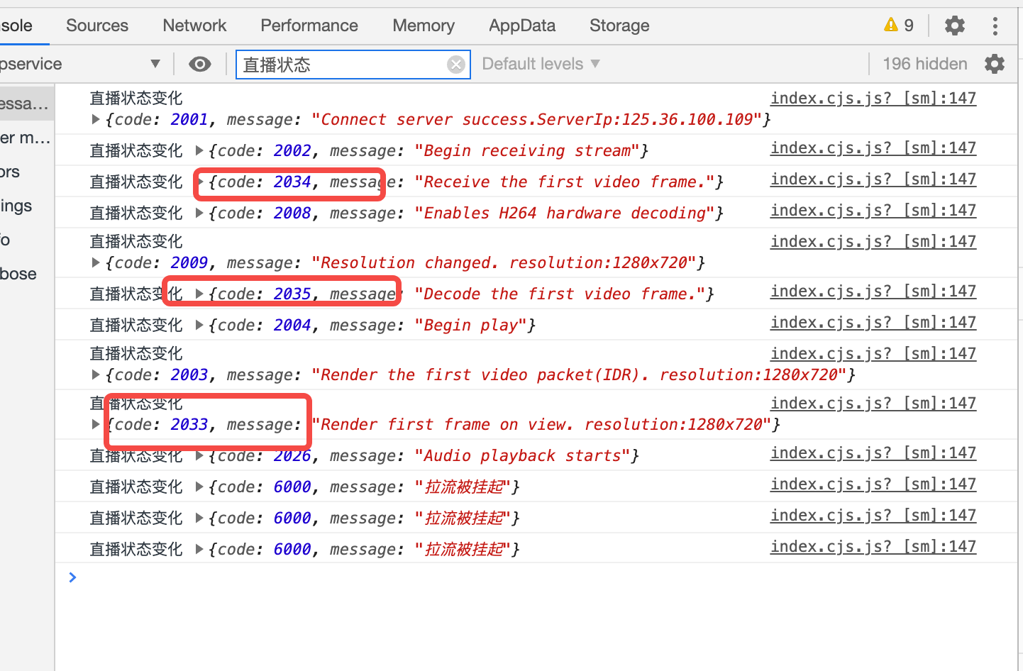 图中的 203x 文档中都没有,文档中只有一个 2032,代表”拉流:视频渲染首帧事件“