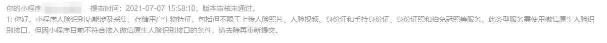 小程序需要用户通过摄像头左右扭头之类的动作通过人脸识别上传照片,不涉及采集用户姓名和身份证等信息,可以审核通过吗