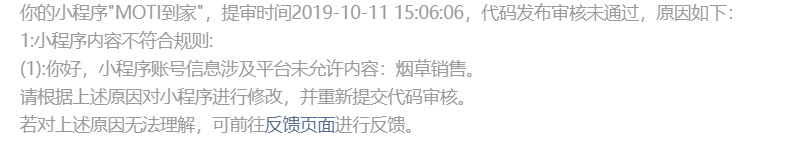 小程序中已经不包含关于烟草销售等相关内容,经自查,相关文案信息包括内容都已经去掉了