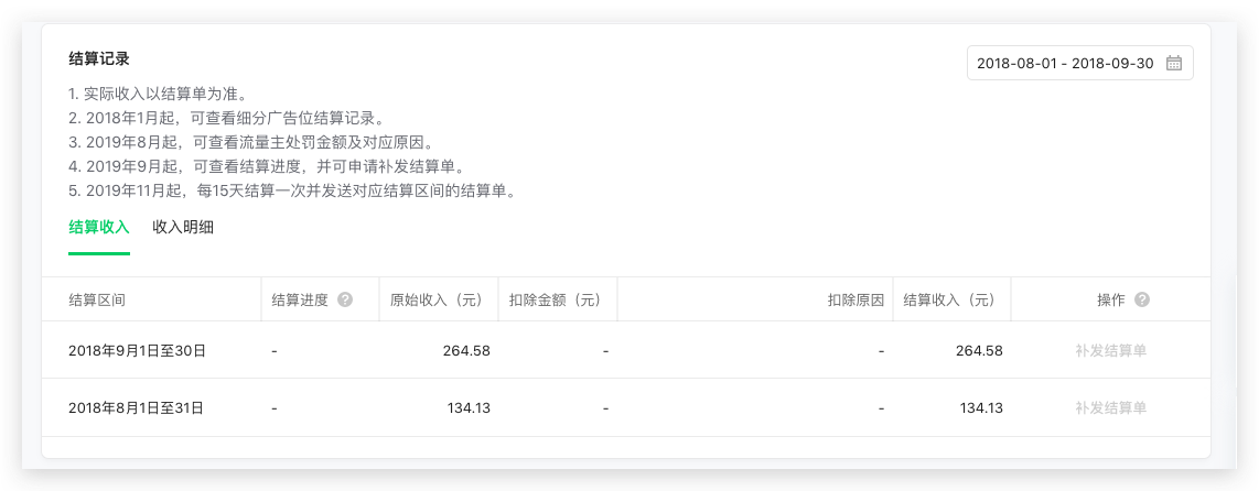 小程序流量主结算一直没提现,18年到19年的结算无法补发结算单,请问这是为什么?