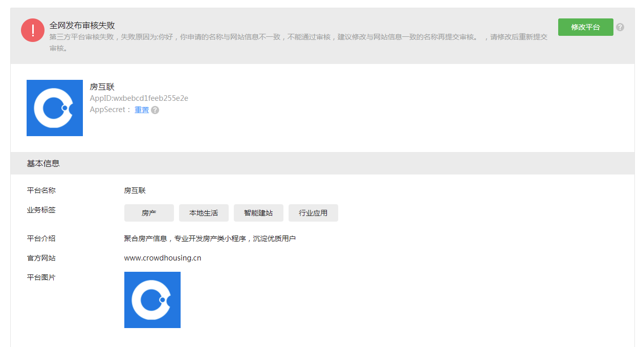 我第一次发布,有些不太明白,想请教一下,第三方平台的“平台名称”是指的什么?我是设置的我们公司的一个产品名称,不能通过审核,是必须设置为公司名称才可以吗?还是说只要跟填写的“官方网站”网址中的站点标题名称一样就可以呢?
