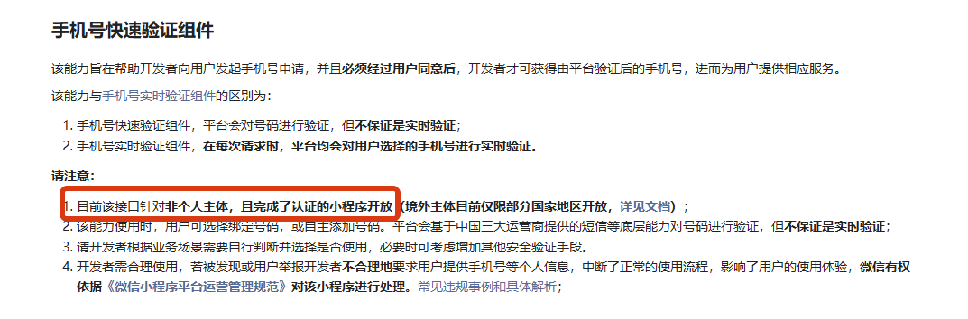 您好 我请问一下现在的这个接口 <button open-type="getPhoneNumber" getphonenumber="handlePhoneAuth">我的主体是 个体户认证的可以调用该 api吗