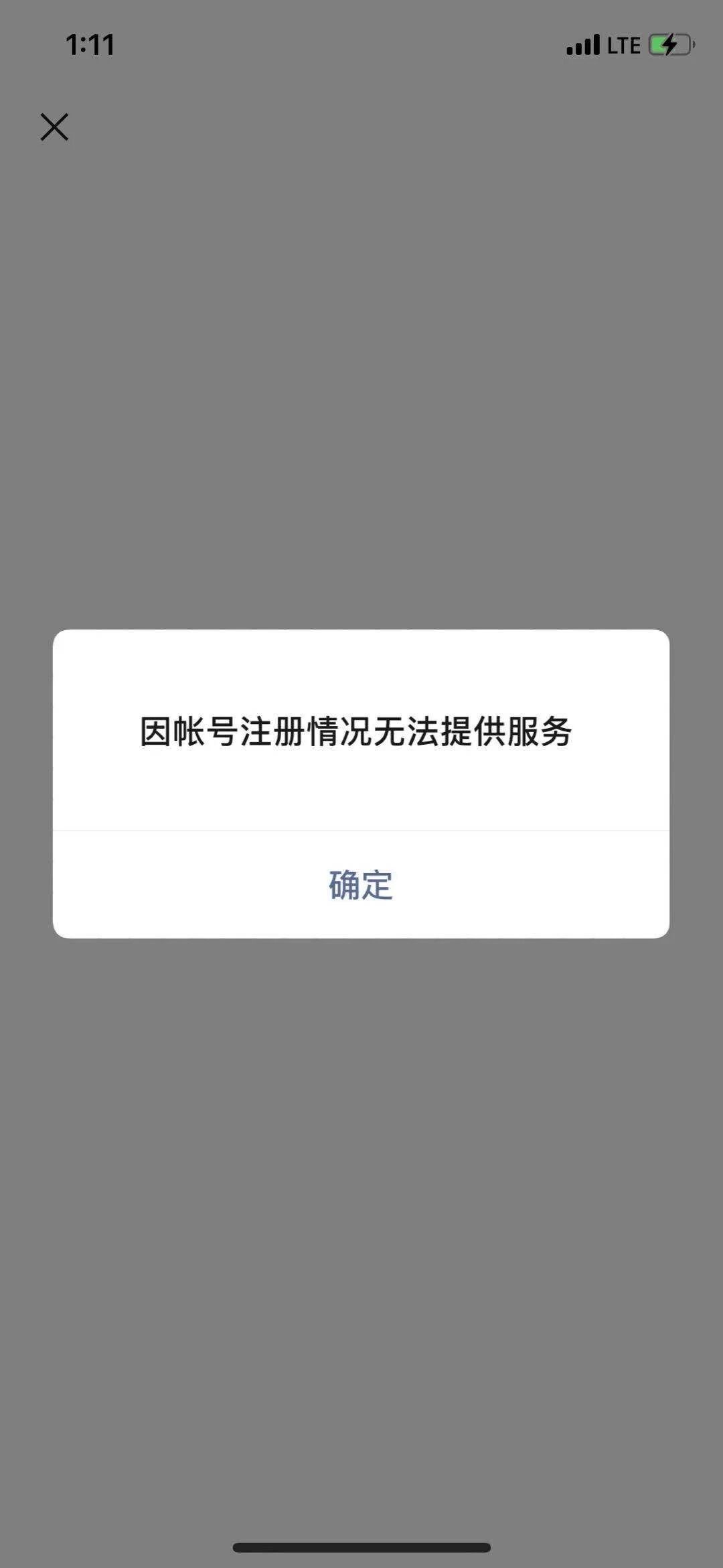 尝试4~5次后,直接就出现了“因账号注册情况无法提供服务’