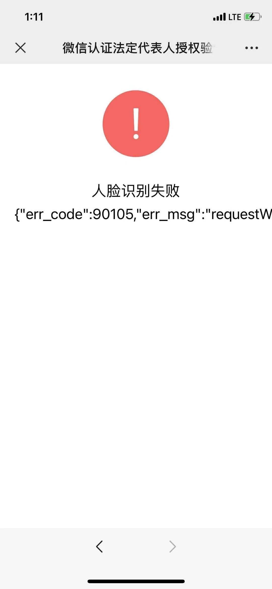 {"err_code":90105,"err_msg":"requestWxFacePictureVerifyUnionVideo:fail"}